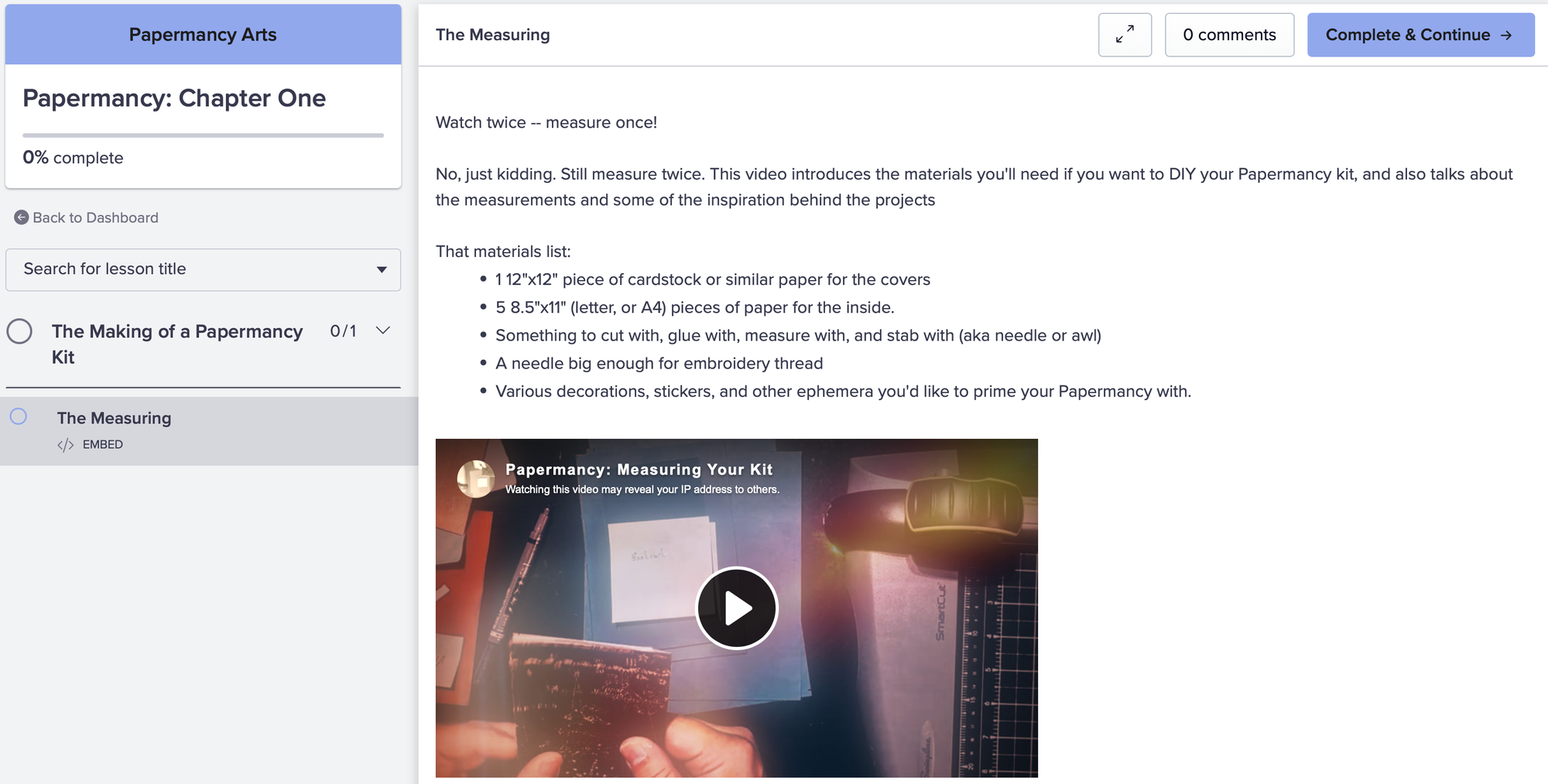 Second, my in-house BBT (beta-beta-tester) has verified that if you go to this link, scroll down and select the Beta Tester plan (for $0) you will be able to enroll in the Papermancy Chapter One curriculum.